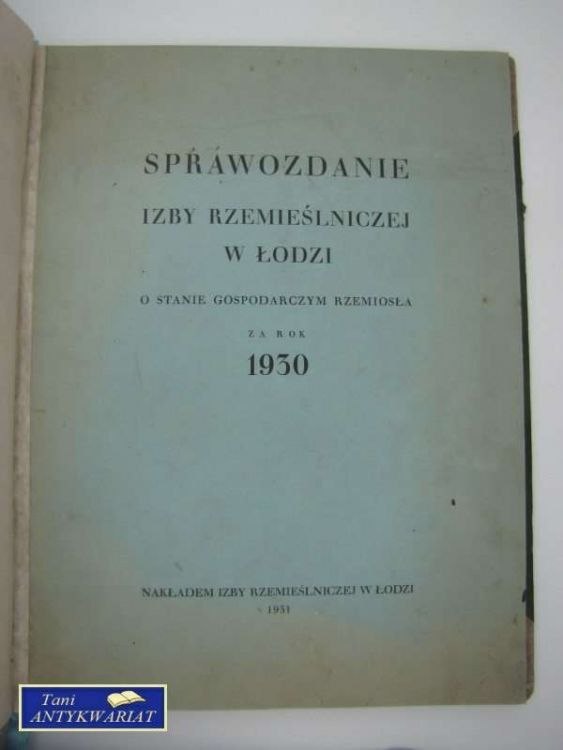 SPRAWOZDANIE IZBY RZEMIEŚLNICZEJ W ŁODZI 1930